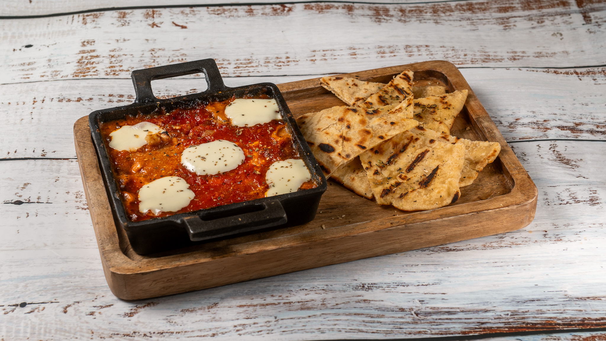 baked feta with peppers & tomato, served with pita bread
