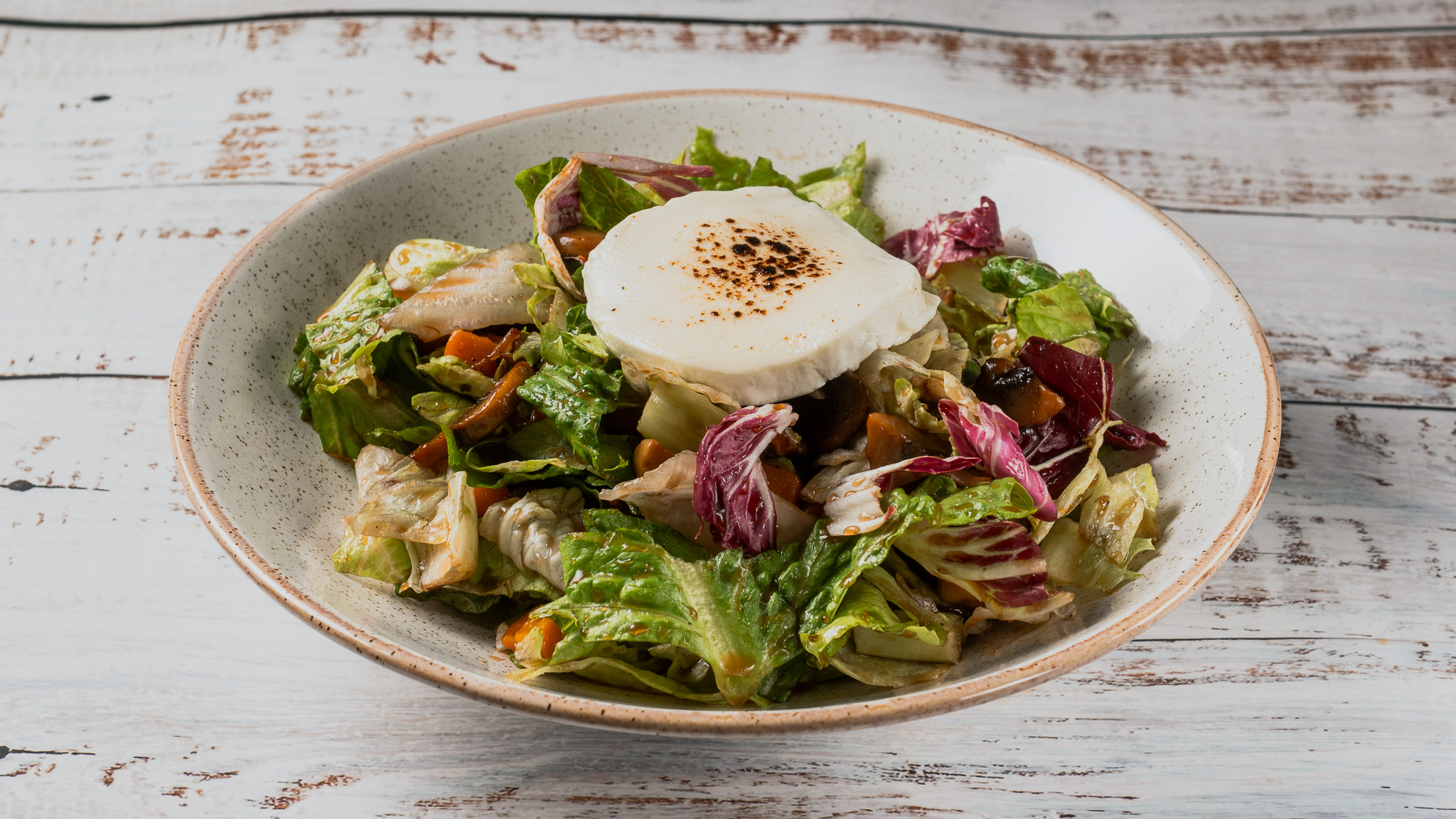 mesclun greens with roasted pumpkin, sautéed mushrooms, goat cheese & vinaigrette