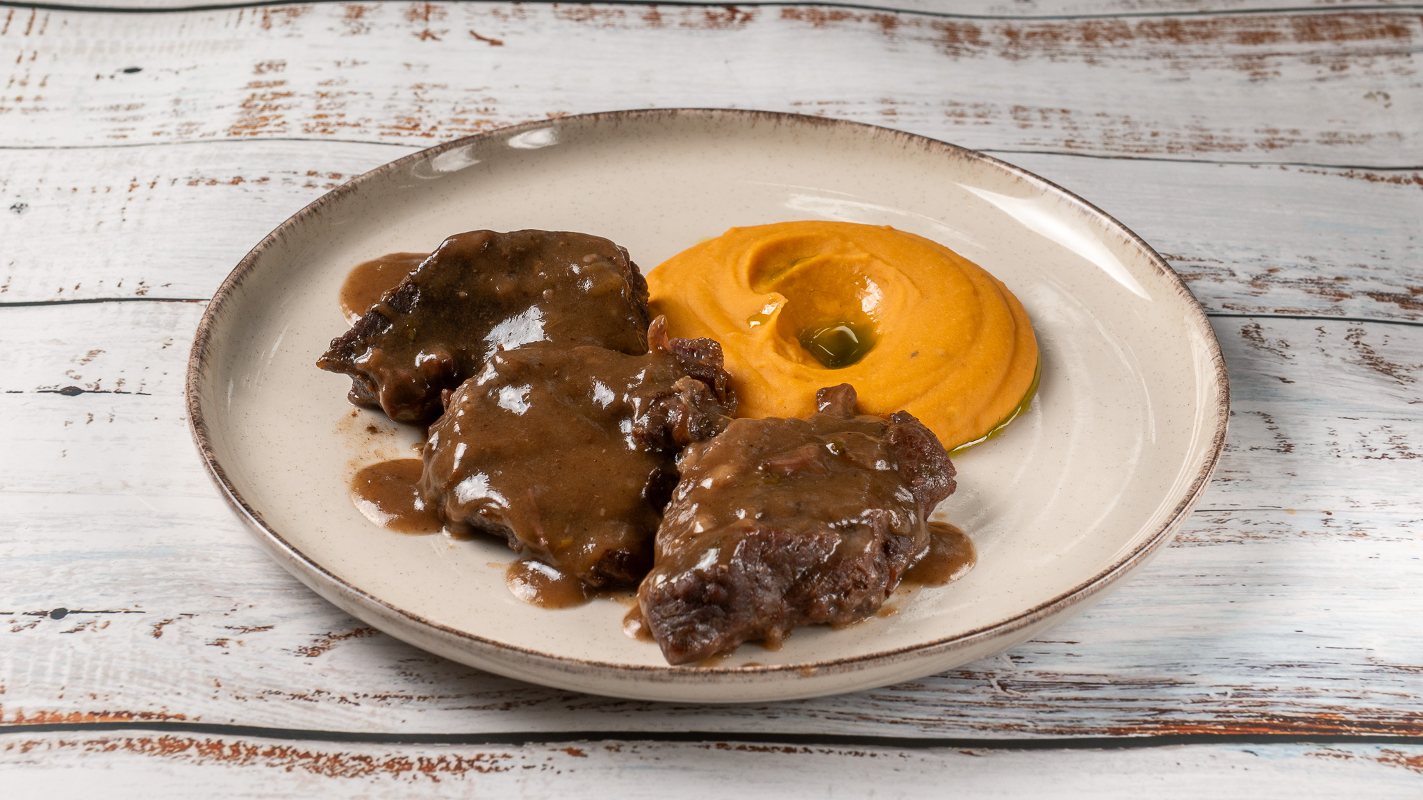 with gravy sauce & chickpea purée